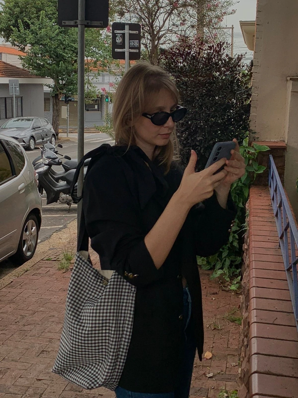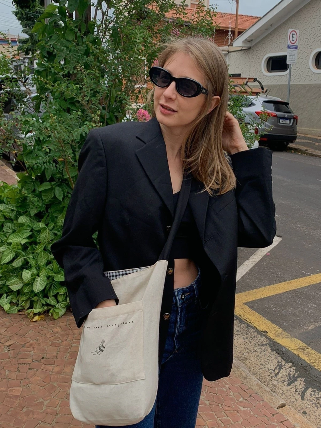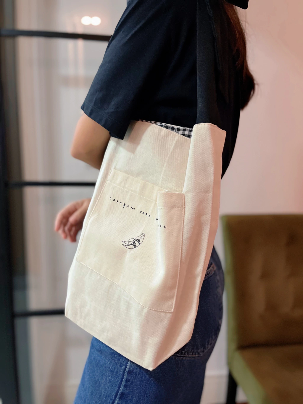 - feita em tecido 100% algodão cru com forro estampado xadrez preto e branco